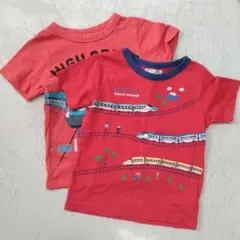 マザウェイズの恐竜プリントTシャツと、カットソー素材のストライプ柄ハーフパンツをセットでお譲りします。