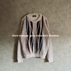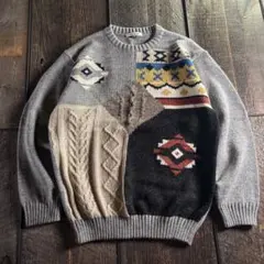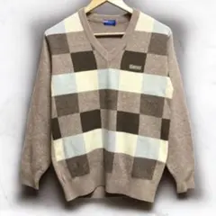 【個性派古着】香港製 Vネックセーター 肉厚 ピュアニューウール マルチカラーL