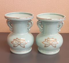 【特価品】陶器 仏壇用花瓶 青磁 1個 箱なし 中サイズ
