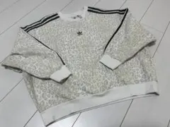 レオパード柄のadidasスウェット、黒色、前後首元付近ににシミあり。