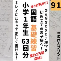 【新発売!】91.小学1年国語なぞり書き基礎練習プリント、ひらがなカタカナ漢字