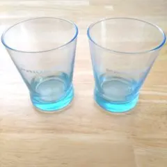 透明なグラス本体に、特徴的な青色のコーン型(円錐形)の底部を持つ デザインです。