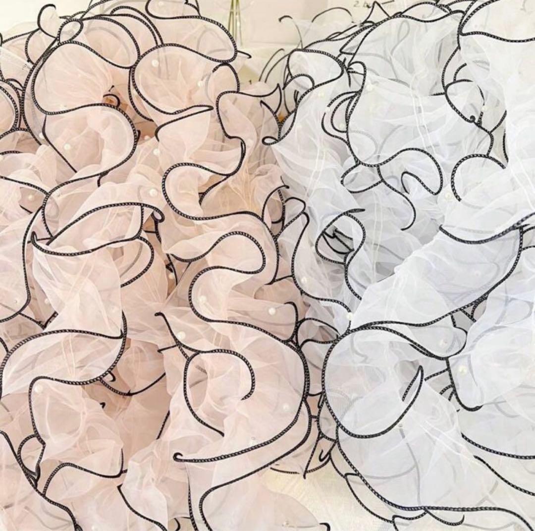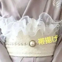 帯揚げ 浴衣フリル レース パール風 チュール リボン 着物 袴 振袖 白×黒