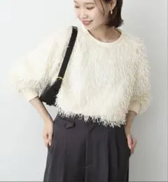 スローブイエナ habiミックスビジューニット ビジュー クロップド丈 グレー