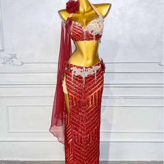 豪華5点 ベリーダンス衣装 マーメイド カスタム ヘッドドレス付 週末限定価格