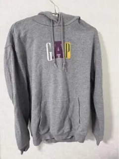 フロントにGAPのロゴ刺繍が施されたブラウンのジップアップパーカー。
