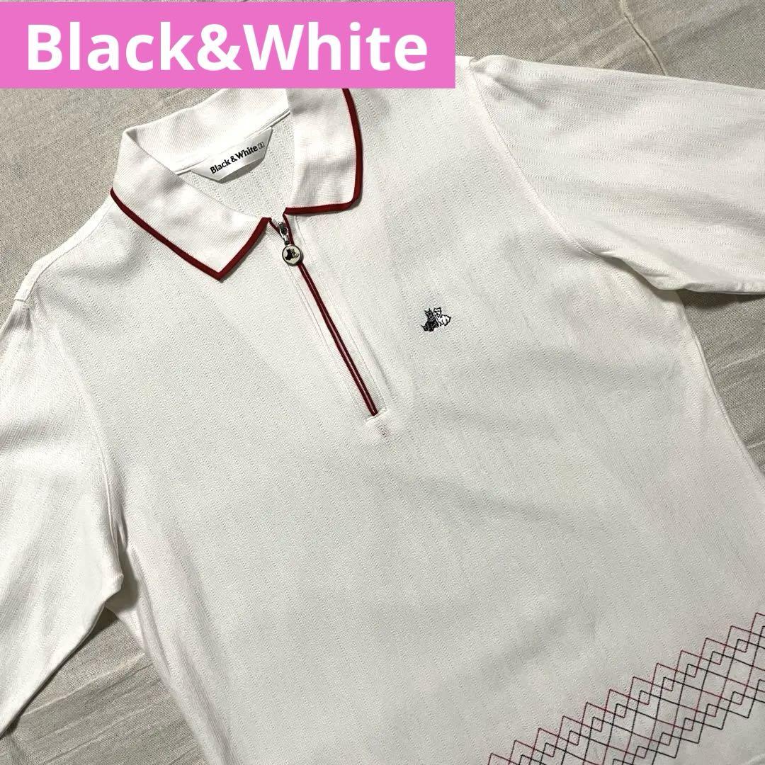 ●ブラックアンドホワイト●ハーフジップシャツ 白 赤 サイズ2 ゴルフ