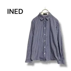INED/イネド◇変形ボーダー Vネック 長袖ブラウス☆シャツ『7』ブルー系