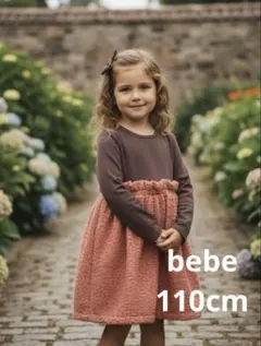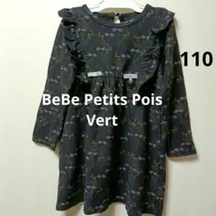 ネイビーとホワイトのストライプデザインにフリルが特徴の七分袖ワンピース。 Bebeのお品です。新品タグ付きです。サイズは120です。購入したものの娘の好みではなかったので出品いたします。