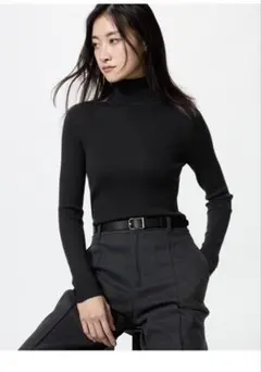 ユニクロ UNIQLO メリノリブタートルネックセーター オフホワイト ボーダーニット