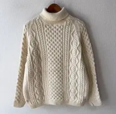 アイルランド製 厚手 ミックスウール ニット セーター M アランセーター