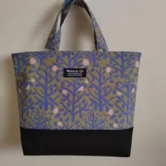 - デザイン: イルカのプリントが施された青いトートバッグ
