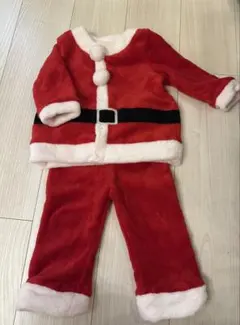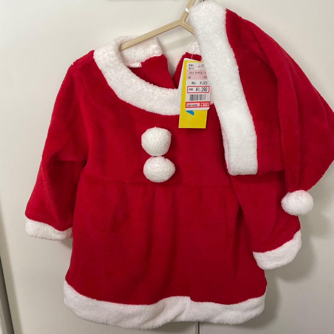フリース素材の赤いサンタコスチューム、ポンポン付きで可愛いデザイン。スカートです。