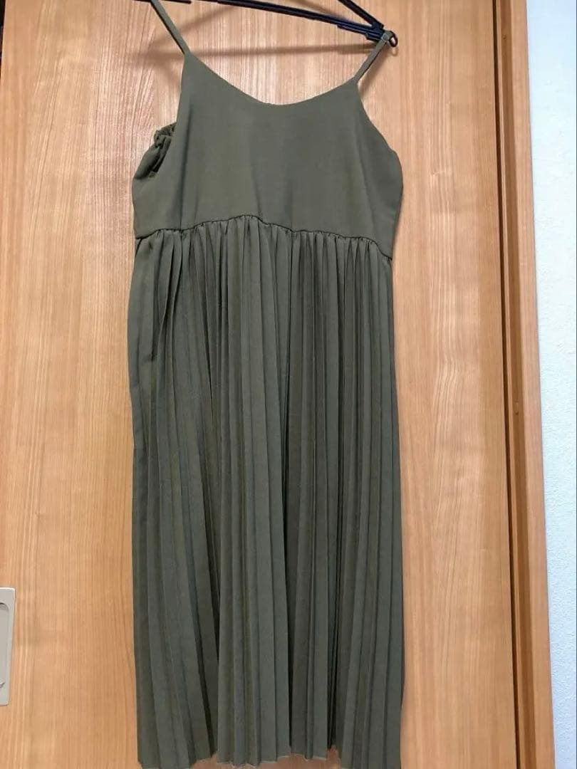 オリーブカラーのプリーツキャミワンピース、E hyphen world gallery製。
