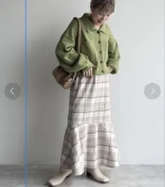 レース編みのディテールが特徴的なベージュのロングスカート。