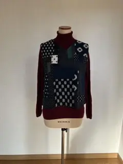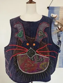 M41 柿渋染め 家紋風呂敷 型染め ロングベスト 古布リメイク ハンドメイド