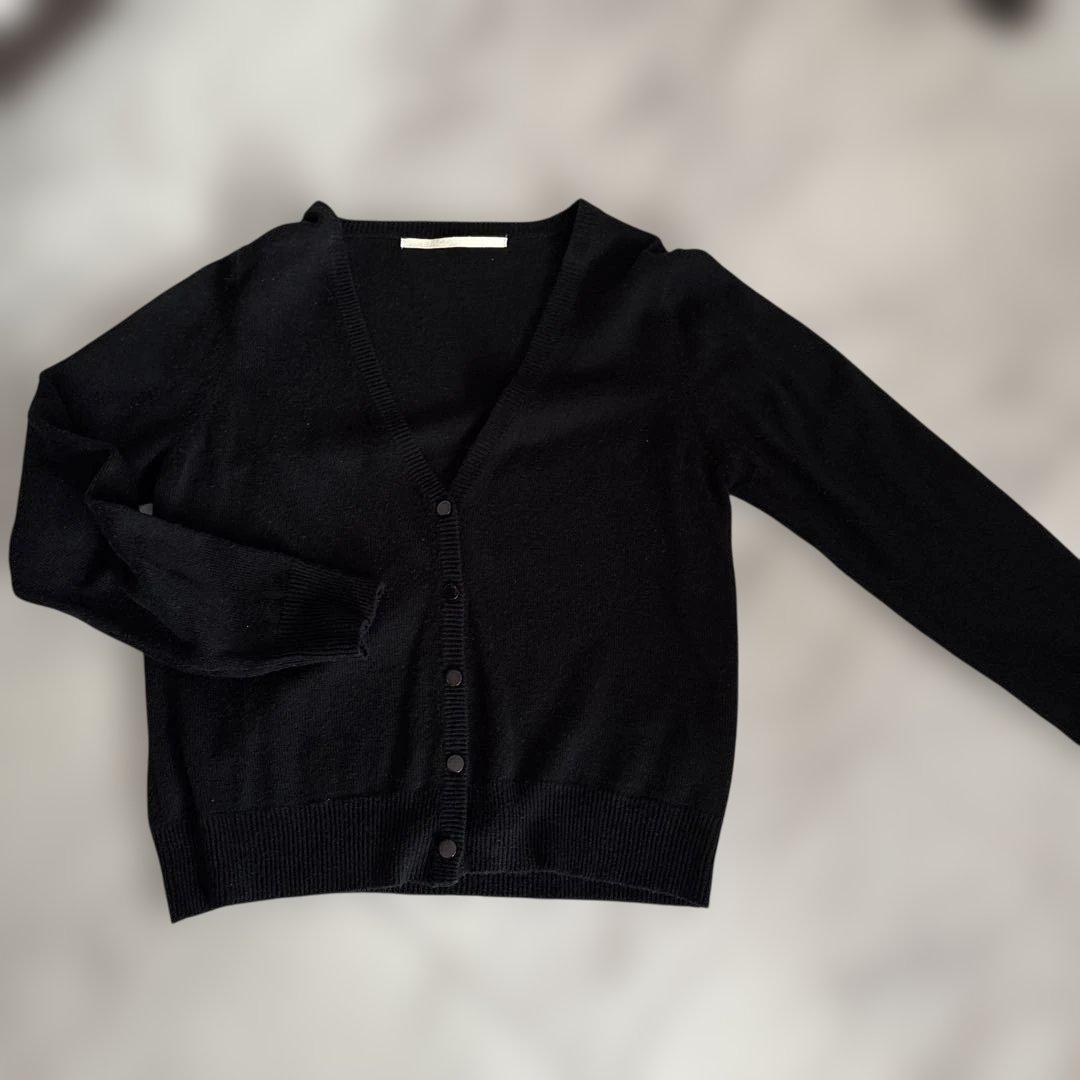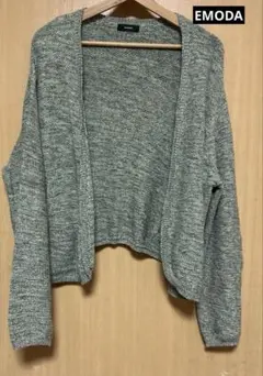 シンプルなブラックのEMODAカーディガン、長袖デザインで多用途に使用可能。