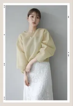 繊細なラメシアー素材が上品な輝きを放つトップス。透け感のあるデザインが軽やかさを演出し、フレアスリーブのラッフルディテールがエレガントな印象をプラスします。一枚で華やかさを引き立てるアイテムで、シンプルなボトムスと合わせるだけで洗練されたスタイリングが完成。特別なシーンからデイリーまで幅広く活躍する一着です。
