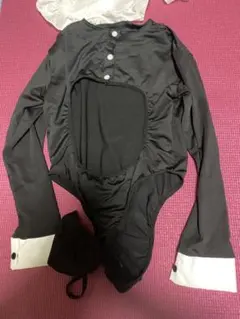 ネイビーのエプロンは、シンプルでありながらもスタイリッシュなデザイン。コスプレだけでなく、日常の料理や作業にも使える実用的なアイテムです。