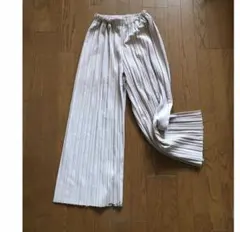 軽やかなポリエステル素材のSサイズのプリーツパンツ。