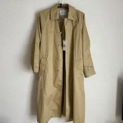 coen のネイビーのステンカラーコート、ポケット付きでスタイリッシュ。
