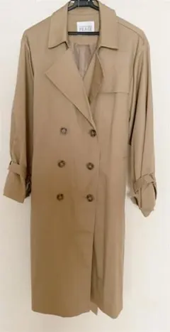 春秋に良さそうなカーキのトレンチコートです。ボタンが一つだけ付いていてサラッと羽織れます。