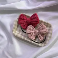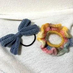 編み物 リボンヘアゴム キッズ ベビー ハンドメイド かぎ編み