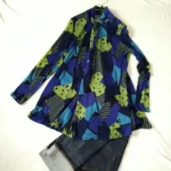【超美品】 HIROKO BIS 黒 チュニック サイズ11 ストライプ柄 L