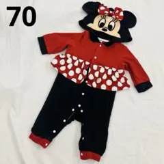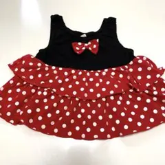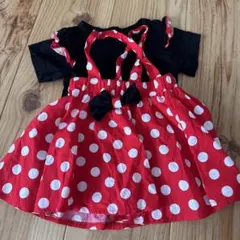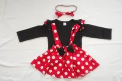 このコスチュームは、ミニーマウスをテーマにした可愛らしいデザインです。赤と黒の水玉模様が特徴で、子供たちに人気のスタイルです。