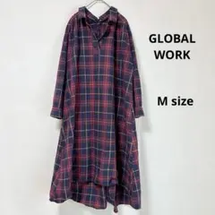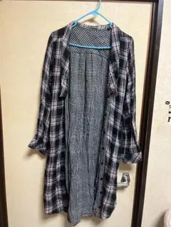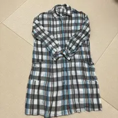 チェック柄 長袖 シャツ ミモレ丈 ロング ワンピース M 古着 ウエストベルト