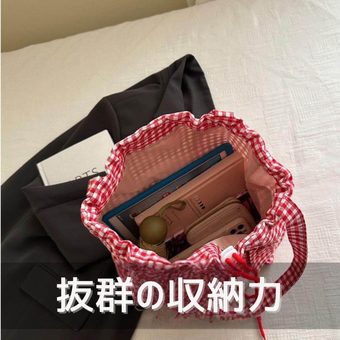 トートバッグ ギンガムチェック フリル マザーズバッグ A4 大容量 巾着 水色