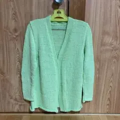 ハンドメイドピンクの模様編み物カーディガン ポケット付きボタン無し