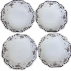 淡いピンク、イエロー、ブルーの可愛らしく主張し過ぎない小花柄がぐるりとあしらわれ、凝ったエンボス加工と金彩が施されたプレートの縁は優雅なウェーブを描いています。
