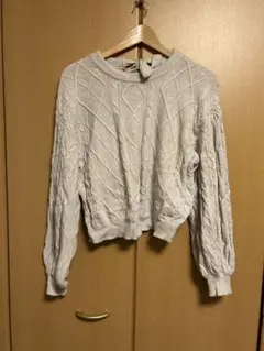 グレーのオフショルダー長袖ニット、C.O.L.Z.A製、Mサイズ。