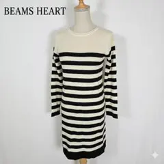 BEAMS HEART ウール混 グレーブラック 長袖 ひざ丈ワンピース