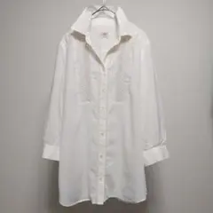 白地に細い紫系のストライプが入っていてスーツの下でもOK、きちんとして見えるデザインです。