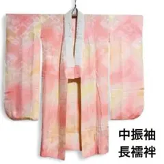 【振袖襦袢】 本振袖 扇に吉祥紋様 花模様 着物 襦袢 身丈約127cm