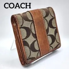 コーチ COACH シグネチャー 折り財布 ファスナー ビニール×レザー ブラウン レッド