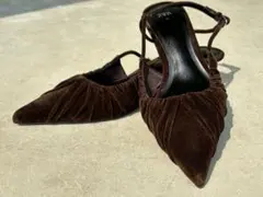 ZARAバーガンディ スエード ポインテッドトゥ ハイヒール37