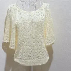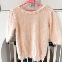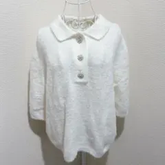 白のふわふわニットです!パールネックでキレイめに着ていただけると思います。