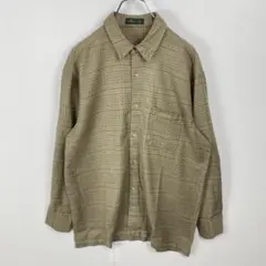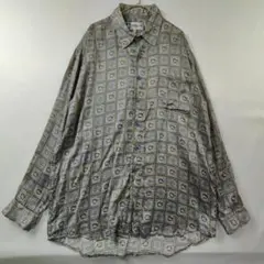 【個性派古着】長袖総柄デザインシャツ 灰色 柄 浮き上がる柄 開襟 メンズM