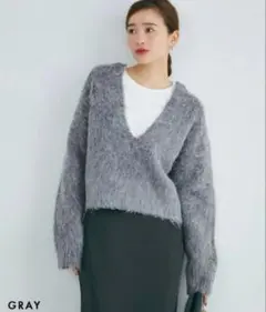 BASEMENT online ケープ ニット ポンチョ グレー MIYU