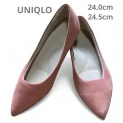 シンプルなブラックのポインテッドトゥパンプス、低ヒールで履きやすいデザインです。