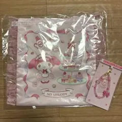 マイメロディとハローキティのぬいぐるみセット、ゴム紐付きで可愛いデザインです。