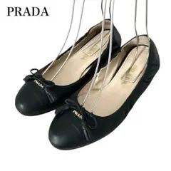 美品✨プラダ バイカラーパンプス リボンロゴ ピンクベージュ 37 1/2