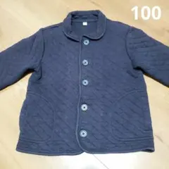 無印良品ネイビーとグリーンのチェック柄のキルティングジャケット、ボタン穴のほつれが少しがあります。