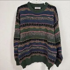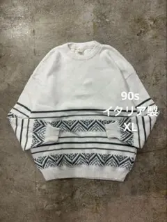 古着 イタリア製 3Dニット ユーロ古着 グレー 切り替え パッチワーク柄 M