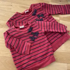 花柄デザインの長袖トレーナー、ピンクとホワイトの2色セット。