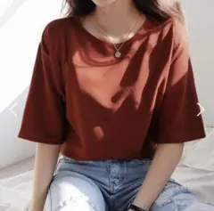 バックが開いたデザインのベージュ系クロップドTシャツ。