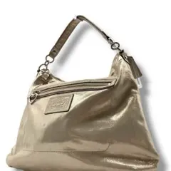 COACH(コーチ)のレザーとキャンバス(またはシグネチャー柄キャンバス)を組み合わせたトートバッグです。